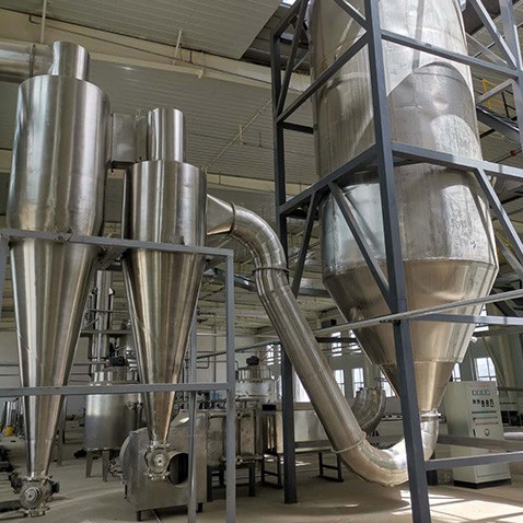 तरल पदार्थ को डायाफ्राम पंप के माध्यम से पंप किया जाता है।तरल पदार्थ को छोटी बूंदों में परमाणु बनाया जा सकता है।फिर यह गिरती हुई गर्म हवा के साथ इकट्ठा होता है।पाउडर सामग्री के अधिकांश भाग मुख्य टॉवर तल के आउटलेट से एकत्र किए जाएंगे।महीन पाउडर के लिए, हम अभी भी साइक्लोन सेपरेटर और क्लॉथ बैग फिल्टर द्वारा लगातार एकत्र करेंगे।